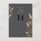 This unique table number card is part of a sophisticated 10th anniversary collection. The design features a black and gold color palette, highlighted with delicate foliage line art. Bold typography balances beautifully with graceful script details, creating a sophisticated and romantic look. Perfect for celebrating '10 years of love' in timeless style. Search ID1169 to see other products in this design set.