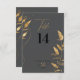 This unique table number card is part of a sophisticated 50th anniversary collection. The design features a black and gold color palette, highlighted with delicate foliage line art. Bold typography balances beautifully with graceful script details, creating a sophisticated and romantic look. Perfect for celebrating '50 years of love' in timeless style. Search ID1169 to see other products in this design set.