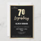 Métallique d'or moderne Surprise 70e anniversaire Invitation. Fêtez un jalon dans le style avec notre Elégant invitation Black & Gold 70th Birthday. Doté d'un arrière - plan noir sophistiqué orné d'un faux papier doré luxueux, ce design ajoute une touche de classe à toute célébration. Cette invitation est parfaite pour que l'invité d'honneur se sente spécial. Rendez le tournage 70 inoubliable avec ce design intemporel et chic !
