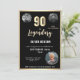 Moderne Gold Metallic Surprise 90ème anniversaire Invitation. Fêtez un jalon dans le style avec notre Elégant invitation Black & Gold 90th Birthday. Doté d'un arrière - plan noir sophistiqué orné d'un faux papier doré luxueux, ce design ajoute une touche de classe à toute célébration. Personnalisée avec 3 photos, cette invitation est parfaite pour que l'invité d'honneur se sente spécial. Rendez le tournage 90 inoubliable avec ce design intemporel et chic !