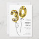 Invitations amis et famille à une fête de 30ème anniversaire avec ce design minimaliste. Doté d'hélium d'or numéro 30 ballons sur un arrière - plan blanc classique et d'un modèle moderne simple qui est facile à customiser avec vos propres détails d'événement.