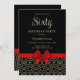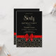 Cette invitation d'anniversaire féminine et classe présente un contour d'or mariage géométrique égyptien et un ruban arc rouge sur un arrière - plan noir. Tout le texte peut être customisé selon vos besoins.