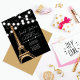 Préparez-vous à briller et briller avec notre invitation à fêter un Sweet sixteen chic et féminin ! Ce design tendance et élégant donne le ton parfait pour une fête inoubliable. Avec une parties scintillant brillante en or imitant la tour Eiffel de Paris, ornée de lumières suspendues blanches et de confettis en parties scintillant brillante argentée, le tout face à un arrière - plan noir élégant. Retournez-le pour révéler une couleur d'or solide ceinturée qui ajoute une pop de plaisir au dos. Cette invitation n'est pas seulement jolie, elle est glamour, moderne et totalement unique. La journée spéciale de votre fille ne mérite rien de moins que ce chef-d'oeuvre thématique de destination. Préparez-vous à faire des souvenirs qui vont dernier une vie avec cette incroyable invitation!