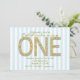 GOLD PARTIES SCINTILLANT ONE Blue Stripe 1st Party Invitations.