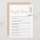 Le "Gold Pearls & Prosecco Couple Trivia Fête des mariées Game" est une activité charmante conçue pour divertir les invités tout en célébrant la mariée et le futur marié. Les participants se livrent à une compétition amicale en répondant à des questions sur la relation du couple, ses intérêts et son histoire d'amour. Amélioré par l'élégance des perles d'or et le raffinement de Prosecco, ce jeu ajoute une touche de glamour aux festivités de la douche nuptiale. Le rire emplit la pièce car les clients se souviennent de moments inoubliables et partagent des informations amusantes sur le couple heureux. C'est une façon charmante de créer des souvenirs durables et de rapprocher tout le monde dans la célébration.