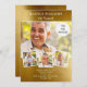 Créez votre propre collage photo unique. Utilisez quatre, 4 de vos photos préférées. Personnalisez et ajoutez un nom et des détails du parti. Un arrière - plan à l'allure fausse or, texte blanc.