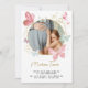 This charming baby shower invitation features a delightful blend of pastel butterflies fluttering gracefully around a golden circular frame. The frame houses a central image, perfect for showcasing your favorite photo of the expectant mother or a "joyous anticipation" moment. Surrounding the image, whimsical pink and white flowers accentuated with subtle golden sparkles add a touch of nature's elegance. The crisp white background allows the vibrant colors to stand out, making it an ideal choice for a memorable baby shower brunch.
