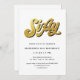 Invitation Gold Retro Script Black White 60th Birthday Party