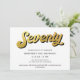 This fun, retro-inspired 70th birthday party invitation features a classic white background with faux gold retro script and simple typography for the invitation text. The script on the front says "Seventy". Customize this design further by adding a photo or additional text to the back simply by using the "design tool".