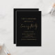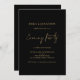 Elégante Réception Soirée Mariage Noir Script Gold. Disponible numériquement et imprimé. Elégance classique en noir et or. Un ensemble de style manuscrit pour Soirée et le reste du texte que vous pouvez facilement personnaliser. Les couleurs du texte et de l'arrière - plan peuvent être modifiées à n'importe quel ou à votre choix via l'option Modifier plus.