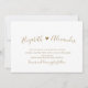 Écriture moderne élégante blanc et or QR Code Toutes en une carte de faire-part de mariage. Améliorez votre célébration avec un design sophistiqué de typographie noire, oré d'une police de script de calligraphie chic et d'un coeur d'amour dessiné à la main accent blanc et or. Le dos de l'invitation moderne contient tous les "détails mariages" essentiels que vous verriez habituellement sur des cartes séparées dans le paquet mariage. Cette fonctionnalité de faire-part de mariage tout-en-un budget moderne au dos d'un modèle graphique de code QR que vous pouvez remplacer par votre propre code (ou supprimer si vous n'avez pas l'intention d'en utiliser un). Facile à personnaliser. Économisez du papier en incluant un code QR pour votre invité afin d'afficher les détails, RSVP ou les deux. Profitez d'une atmosphère chaleureuse et accueillante pour que vos invités partagent la joie de votre journée spéciale. Commandez dès maintenant et faites de votre fête mariage une fête vraiment inoubliable !