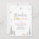 Célébrez votre journée spéciale avec cette Invitation d'hiver Onederland 1er anniversaire! Ce design présente une scène hivernale avec des flocons de neige en parties scintillant d'argent, des arbres, des cerfs, et une typographie élégante " Winter ONEderland dans le thème rose, or & argent couleur. Idéal pour une première fête d'hiver pour une fille.