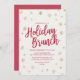 Cette carte d'invitation pour le brunch aux flocons d'or est parfaite pour un événement de vacances moderne. Le design comprend un cadre de faux flocons de feuilles d'or et une police rouge élégante mais festive. Remarque : Ce design ne comporte pas de véritable feuille d'or. C'est un graphique de haute qualité fait pour ressembler à une feuille d'or chatoyante.