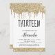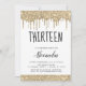 Parties scintillant à gouttes d'or et de blanc étincelant La fille devient un ado 13ème Treizième (Treize) Invitation de fête d'anniversaire. C'est le parfait enfant 13ème - 13ème anniversaire de treize filles Invitation pour une Parties scintillant moderne étincelante Fille étincelante fête d'anniversaire. Veuillez contacter le concepteur pour les articles customisés correspondants.