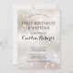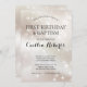 Cette superbe invitation à la combinaison 1er anniversaire et baptême ou baptême présente des étoiles célestes blanches sur un arrière - plan d'or avec texte noir. Personnalisez cette invitation avec les détails de l'événement.