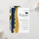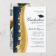 Invitation vos proches à votre cérémonie de remise des diplômes et à votre célébration avec cette invitation photo élégante et classe avec des tons bleus, des vagues d'or, des étoiles d'or et de la parties scintillant.