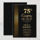 Invitation Gold Striped Black 75th Surprise Birthday Party