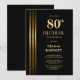 Invite your friends and loved ones to your birthday celebration with this modern gold striped black 80th birthday party invitation. The customizable text area in this invitation template allows you to include all the necessary details for your special birthday celebration, including the date, time, venue, and RSVP information. A variety of paper types and corner styles are available for your unique invitations, along with the option to download if you prefer a digital format.