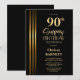 Invitation Gold Striped Black 90th Surprise Birthday Party