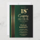 Invitation Gold Striped Black Green 18th Surprise Birthday