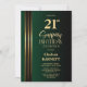Invitation Gold Striped Black Green 21st Surprise Birthday