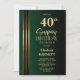 Invitation Gold Striped Black Green 40th Surprise Birthday