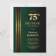 Invite your friends and loved ones to your birthday celebration with this modern gold striped black and green 75th birthday party invitation. The customizable text area in this invitation template allows you to include all the necessary details for your special birthday celebration, including the date, time, venue, and RSVP information. A variety of paper types and corner styles are available for your unique invitations, along with the option to download if you prefer a digital format.