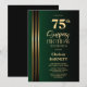 Invitation Gold Striped Black Green 75th Surprise Birthday