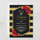 Surprise rayée noire et or 21e anniversaire invitation dîner soirée avec élégante affiche rouge et orange floral. Le texte est entièrement personnalisable pour vous permettre d'inclure toutes vos propres informations pour la célébration de votre anniversaire. (NB : Faux parties scintillant a été présenté sur cette invitation.)