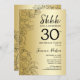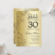 Gold Surprise 30th Birthday Party Invitation. Design féminin de glam avec accents botaniques et police de script de typographie. Carte invitation florale simple parfaite pour une célébration anniversaire surprise femme élégante. Peut être customisé à n'importe quel âge. Imprimé Zazzle invitations ou télécharger instantanément le modèle numérique.