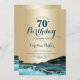 Turquoise et or agate 70e anniversaire invitation de fête. Design élégant et moderne avec aquarelle agate marbre arrière - plan, fausse parties scintillant or et typographie script de police. Carte invitation branchée parfaite pour une célébration anniversaire féminine élégante. Invitations Zazzle imprimées ou téléchargement instantané modèle imprimable numérique.