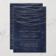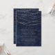 Gold Twinkle String Lights Aquarelle Faire-part de mariage bleu. Faire-part de mariage personnalisable avec aquarelle bleu marine arrière - plan avec des lampes à corde dorées et élégant script. Cette élégante invitation de mariage sera parfaite pour les mariages extérieurs et en soirée.