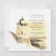 Gold Watercolor Beach Lighthouse Paysage Faire-part de mariage.
