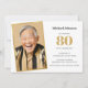 Invitation Gold White Simple Photo personnalisée 80e annivers