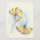 A trio of ginkgo biloba leaves hues of yellow, gold and orange on a cream colored background is featured in this design created in soft pastel.