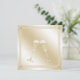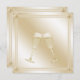 Cette magnifique invitation à la fête de fiançailles a un arrière - plan à effet métallique d'or pâle ombragé avec deux verres de champagne jaune or pâle remplis de vin mousseux et mousseux. Des lignes doubles se chevauchent pour former une bordure à l'invitation et celles-ci sont "épinglées" aux coins par de faux saphirs jaunes ou des pierres de juments tourmalines.