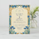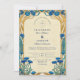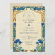 Un design mariage d'inspiration Art Nouveau raffiné avec de superbes fleurs de maïs bleues encadrées de détails botaniques dorés. L'élégance vintage associée à des touches florales audacieuses crée un look intemporel mais artistique, parfait pour les couples à la recherche d'un style mariage sophistiqué et romantique.