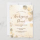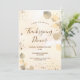 Une chute d'or Thanksgiving Diner invitation. Un arrière - plan doré à l'eau décoré de feuillage d'eucalyptus doré et de poussière de parties scintillant en faux or. Personnalisez et ajoutez les détails de votre fête.