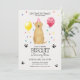 Golden Retriever Dog Pawty Puppy Anniversaire rose Invitation. Une invitation parfaite pour les amoureux de les chiens ! Golden Retriever Dog Invitation anniversaire avec un casquette de fête rose et ballons jaunes et roses. Consultez Lets Pawty Collection pour d'autres races de chiens et articles correspondants.