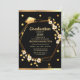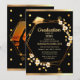 Célébrez un moment de fierté avec cette carte de graduation moderne en noir et or. Le design avant présente un cadre fleuri et géométrique élégant avec des pois dorés, tandis que le fond présente une silhouette de coucher de soleil étonnante d'un diplômé tenant son casquette - symbolisant l'espoir, la réussite et de nouveaux débuts. Parfait pour honorer la Classe de 2025 avec style et sentiment.