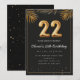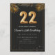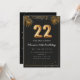 Adorable 22th birthday party invitation in a black and gold balloons design with golden tropical palm leaves. Customize with your party details and mail out to family and friends inviting them to celebrate the 22th birthday with style!