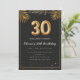 Adorable 30th birthday party invitation in a black and gold balloons design with golden tropical palm leaves. Customize with your party details and mail out to family and friends inviting them to celebrate the 30th birthday with style!