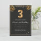 Adorable 3rd birthday party invitation in a black and gold balloons design with golden tropical palm leaves. Customize with your party details and mail out to family and friends inviting them to celebrate the 3rd birthday with style!