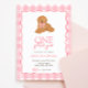Celebrate your little one’s “one golden year” with this sweet puppy themed invitation! Featuring a playful golden doodle wearing a pink gingham bow and a matching pink gingham border, this design is perfect for a first birthday party. Easily customize the name, date, and party details right in your browser—no special software needed. A charming choice for dog lovers and darling birthday celebrations alike!