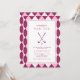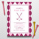Célébrez en style avec cette invitation chic, au golf, conçue pour elle ! Doté d'un titre "PAR-TEE" ludique et de clubs de golf croisés. La bordure de Jacquard classique prend une allure féminine dans les tons roses, ajoutant une touche amusante et branchée. Avec une typographie propre et moderne pour tous les détails de l’événement, cet invitation est parfait pour toute femme amoureuse du golf... de tout âge, cette invitation donne le ton parfait pour une célébration qui sera un trou dans le cul !
