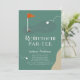 This retro modern "Retirement Par-tee" retirement party invitation features a red flag and golf balls with a fairway and bunker in a golf course . The reverse side features a dark green background with a golf ball and tee pattern. Personalize it for your needs. You can find matching products at my store.