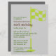 Vous pouvez personnaliser tout le texte à cette invitation orientée de fête d'anniversaire du cinquantième golf. Vous pouvez changer le texte et le nombre sur l'avant et employer ceci pour un soixante-cinquième, soixantième, soixante-dixième ou autre anniversaire. Les caractéristiques de conception un drapeau vert de golf sur un arrière - plan gris, il a un type vert conduire une voiture de golf de l'autre côté.