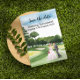 Notre carte d'invitation de mariage présente une belle peinture à l'aquarelle d'un terrain de golf. La carte Save the Date est le moyen idéal pour informer vos amis et votre famille de notre jour spécial.