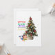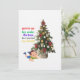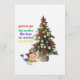 To the left of the boy and the tree is a humorous, multi-colored inscription in a playful font: "gonna go lay under the tree to remind my family". The overall scene is a funny depiction of a child impatiently waiting for Christmas presents.