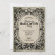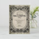Invitation à la fête d'Halloween avec une atmosphère grincheuse et gothique. Comprend un cadre vintage, une police de script et un arrière - plan de papier texturé gris qui se transporte au dos de la carte. Customisez avec vos propres détails pour faire connaître votre événement éffrayant ! Veuillez consulter la collection d'invitations de fêtes d'Halloween pour plus de designs.